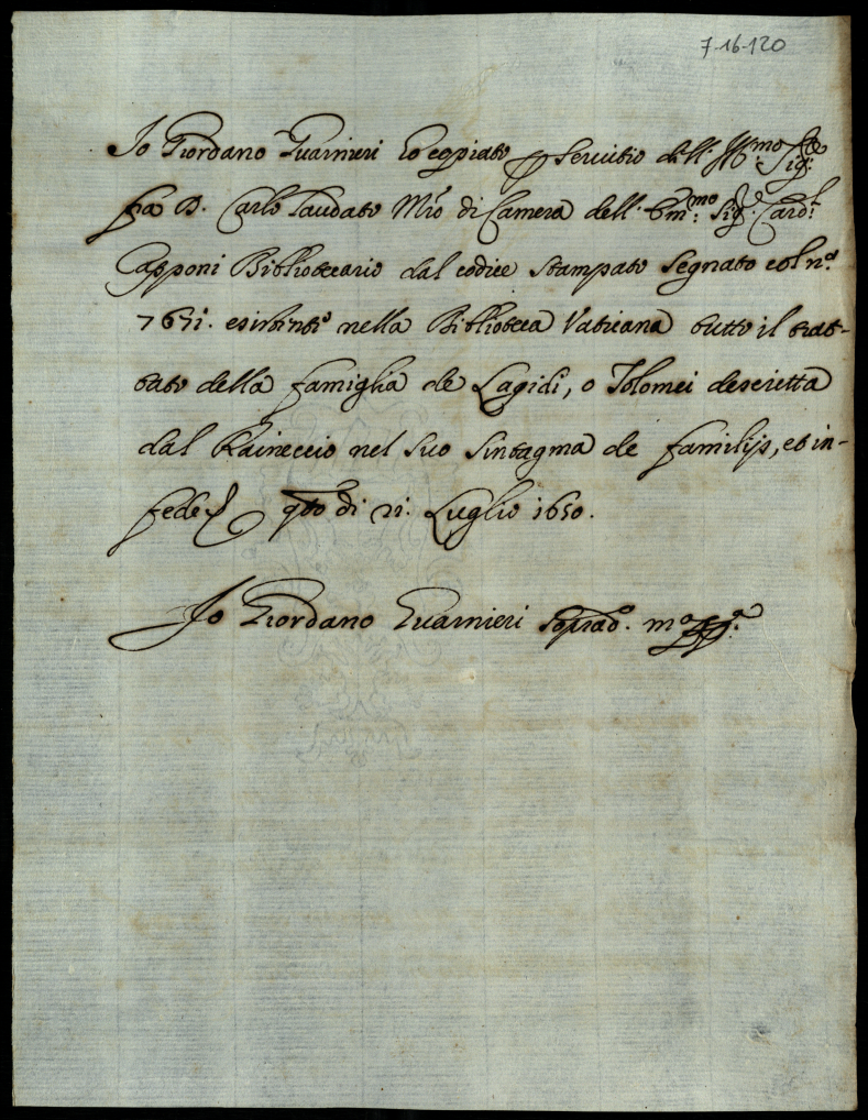 Scritture appartenenti alli Rinaldi custodi della Biblioteca Vaticana