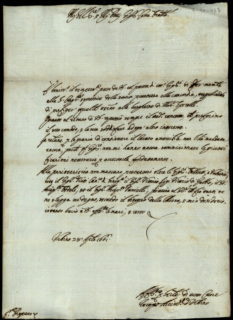 Conti, ricevute e documenti relativi agli ordini di S. Carlo e S. Girolamo del Duomo di Urbino, per i quali contribuì il Preposto Albani