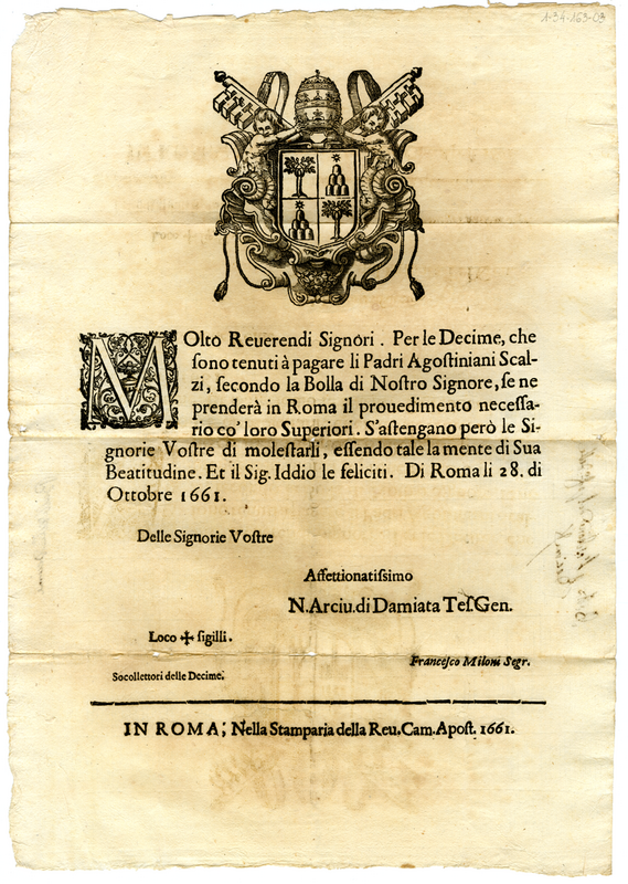 Scritture spettanti alli frati degl'Ordini de Predicatori Carmelitani Servi di Maria della Santissima Trinità del Riscatto de Schiavi Agostiniani Minimi di San Francesco di Paola"