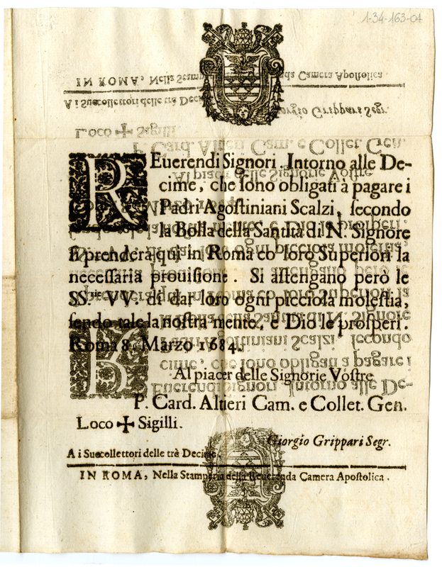 Scritture spettanti alli frati degl'Ordini de Predicatori Carmelitani Servi di Maria della Santissima Trinità del Riscatto de Schiavi Agostiniani Minimi di San Francesco di Paola"