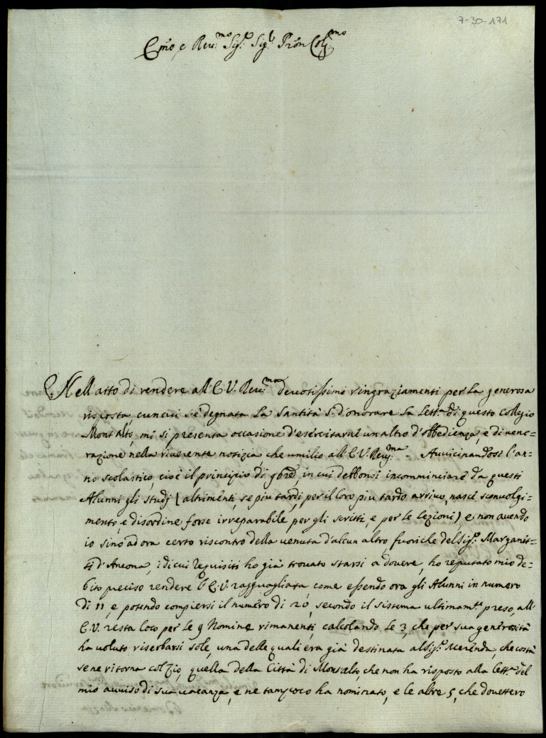 Lettere al cardinale di S. Clemente. 1740