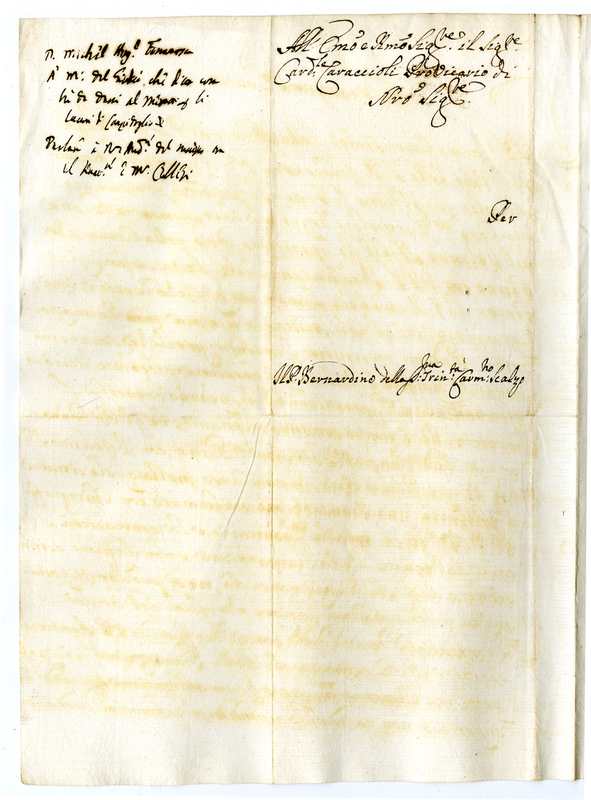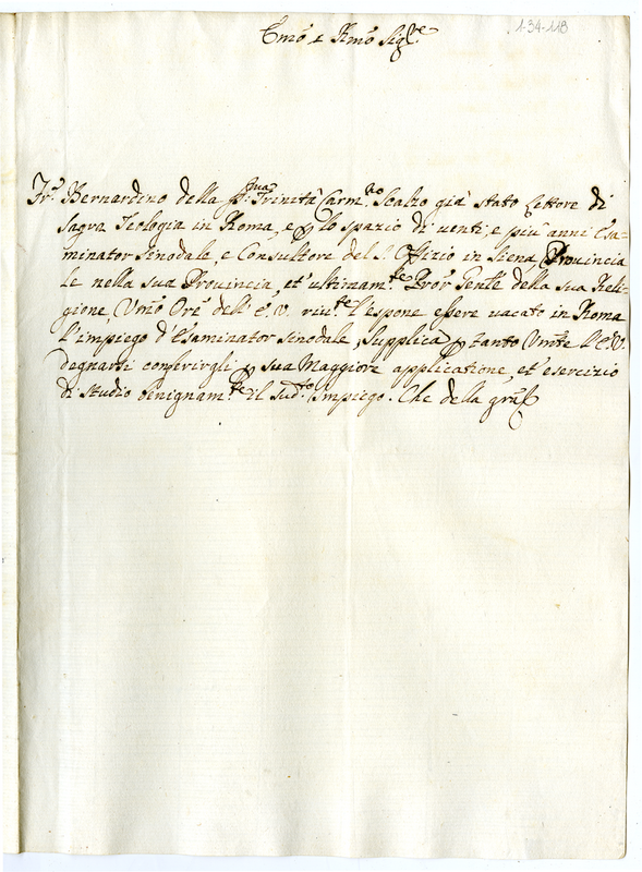 Supplica al cardinale Caraccioli di frate Bernardino carmelitano scalzo della Santissima Trinità (1700-1721)