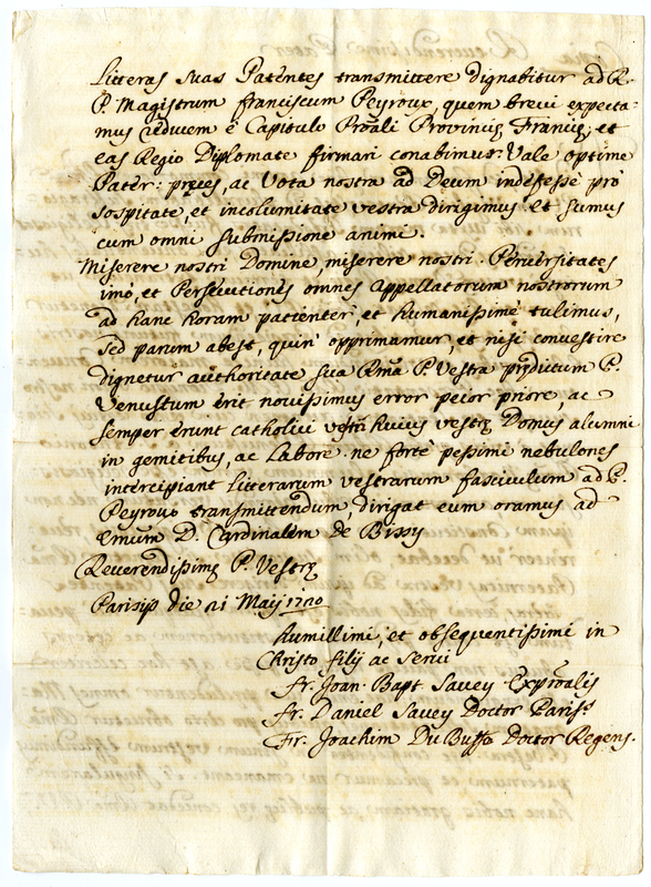 Copia. Lettera di Giovanni Battista Savej, Daniele Savej, Gioacchino Du Buffé al reverendissimo padre (1720 maggio 21)