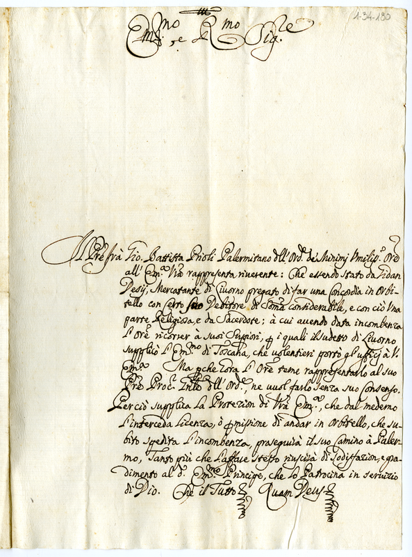 Lettera di Giovanni Battista Prioli a Giovanni Francesco Albani protettore di minimi (1690-1700)
