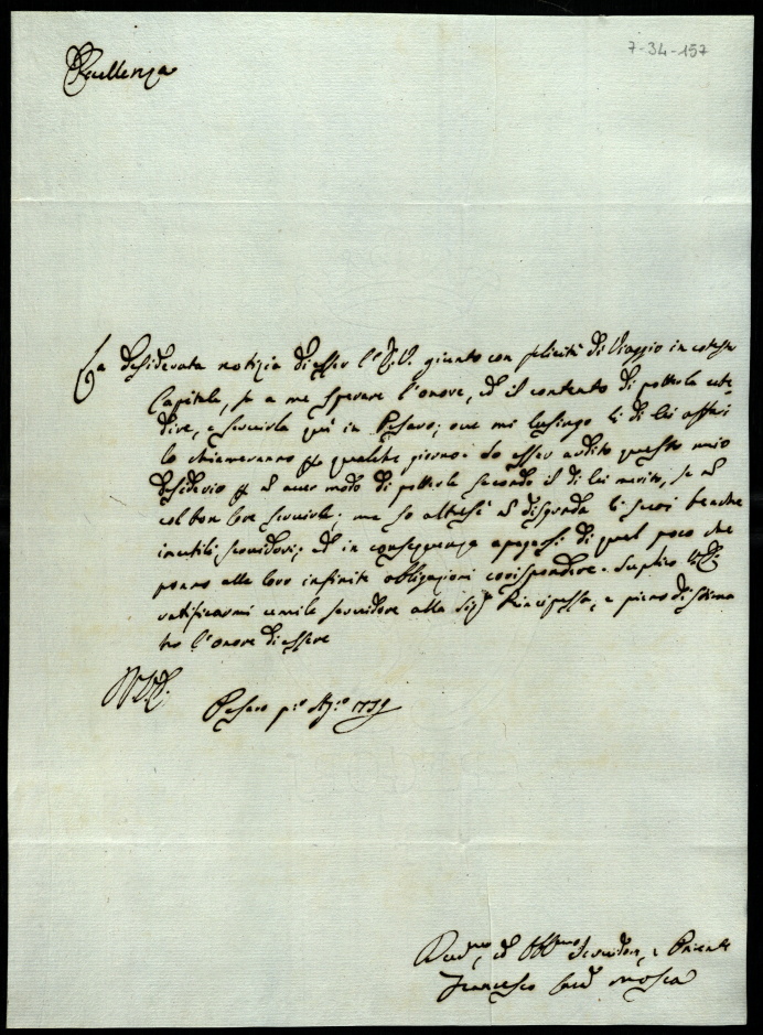 Lettere diverse ricevute dal principe Orazio Albani nella permanenza in Urbino del 1779