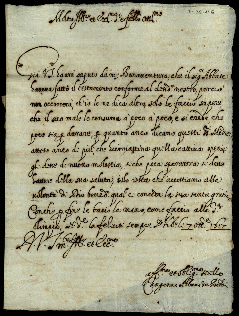 3. Lettere scritte al signor Orazio Albani mentre era podestà di Fossombrone