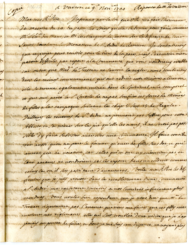 Copia. Reponse de m. de Vaison (1704 novembre 9)