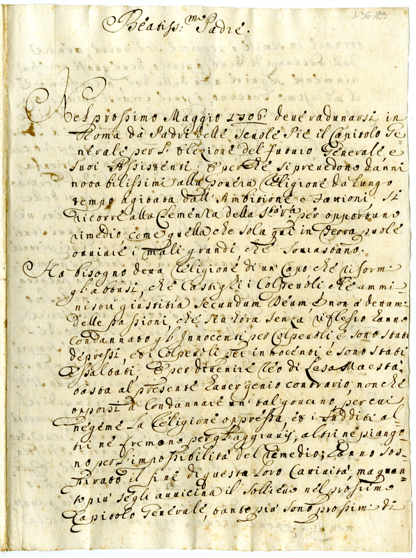 Esposto a Papa Clemente XI sui mali della Religione delle Scuole Pie (1706)