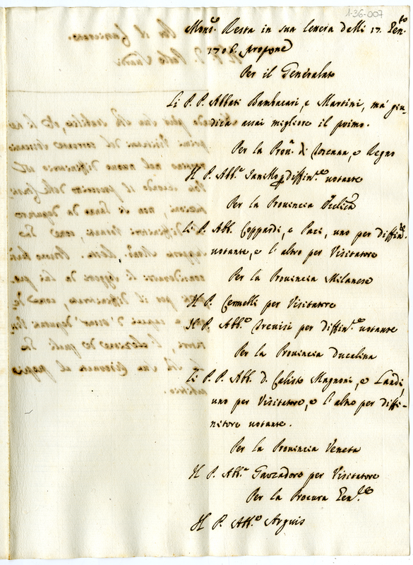 Lettera sulla proposta di Monsignor Resta relativa alla elezione del Generalato della Congregazione dei Canonici Regolari Lateranensi (1706 gennaio 17)