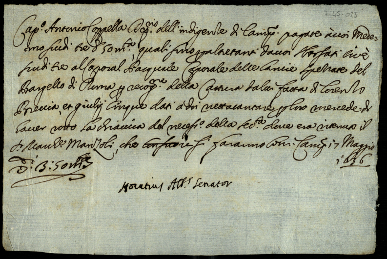 Ordini di vari pagamenti sottoscritti dal senatore Orazio Albani diretti al Depositario dell'Indigenze del Palazzo Capitolino