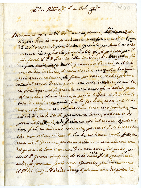 Sulle trame di alcuni confratelli per non fare eleggere il Padre Antonio Della Marra a Maestro Generale dell'ordine