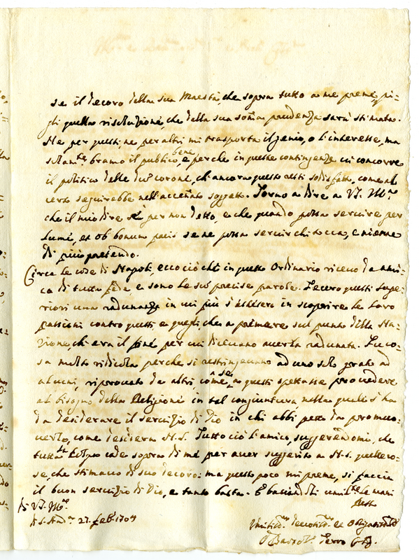 Lettera di Bartolomeo Ferro a Illustrissimo e Reverendissimo Signore (1704 febbraio 27)