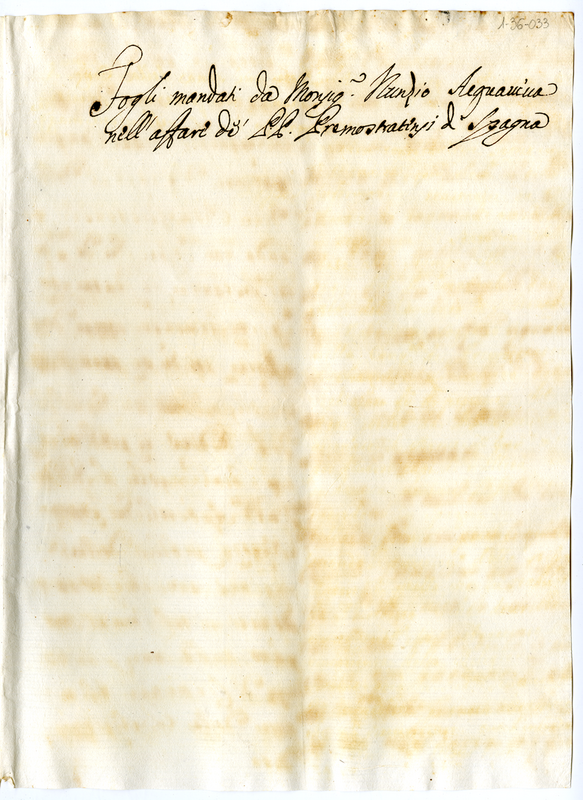 Fogli mandati da Monsignor Nunzio Acquavivva nell'affare de Padri Premostratensi di Spagna (1700-1721)