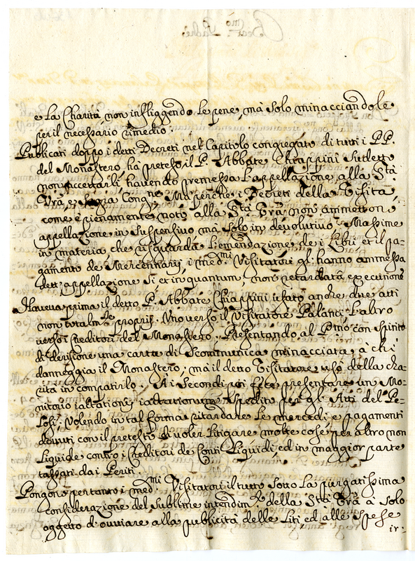 Resoconto sulla visita fatta al monastero di Santa Maria della Pace dai visitatori Prospero Palana e Francesco Maria Visconti