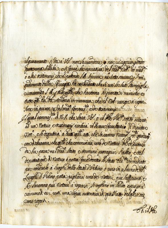Istruzione data a Mons. Virile per andare a Castel Durante ad altrove a ricevere i giuramenti di fedeltà per la Santa Sede Apostolica vivente ancora il Duca