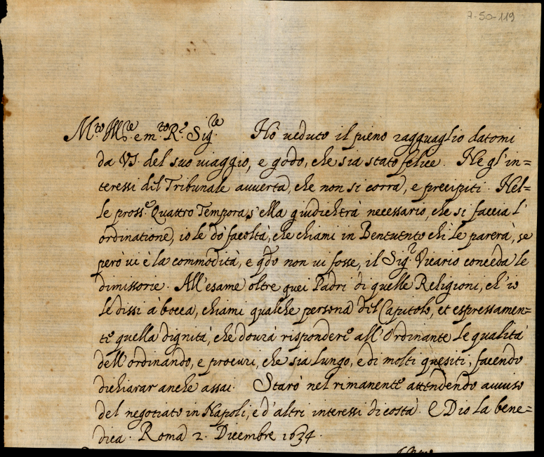 Minute di lettere latine, italiane e francesi scritte a diversi da Monsignor Annibale Albani di complimento, negozio