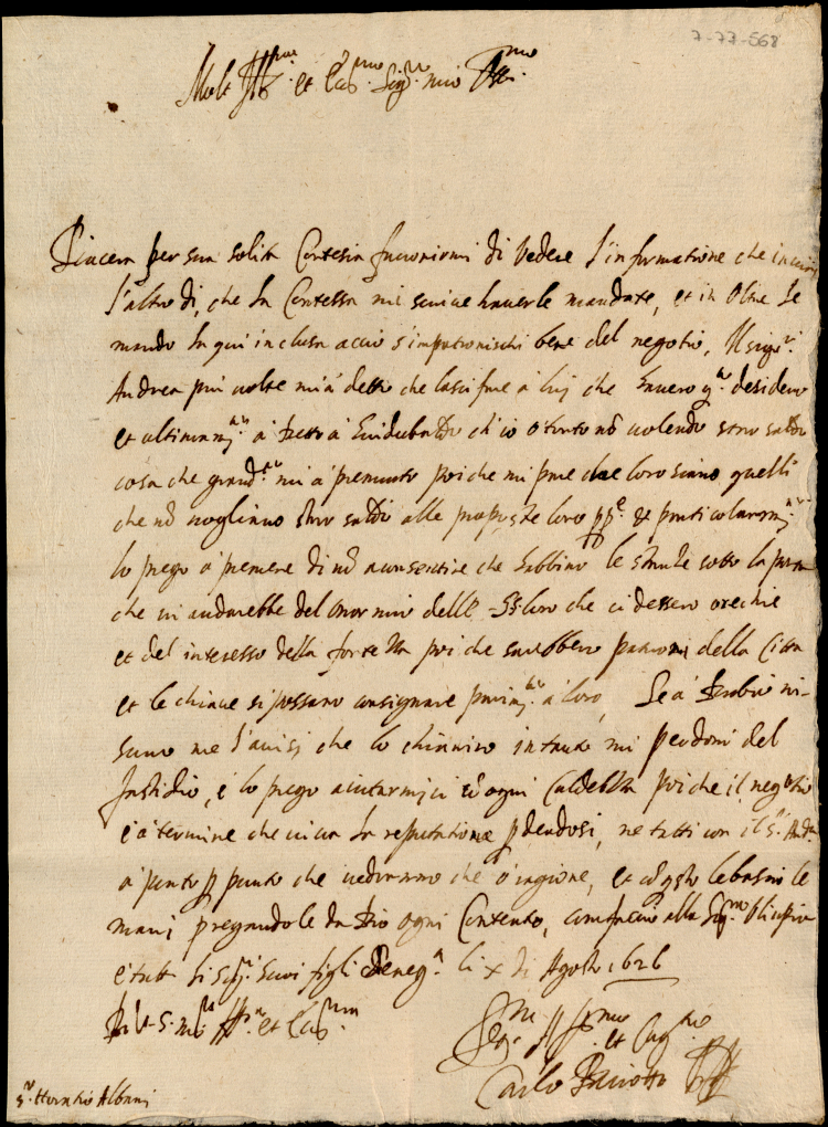 3. Lettere scritte al signor Orazio Albani seniore in Urbino