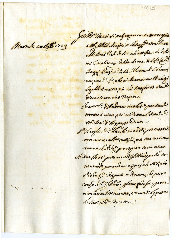 Lettera di Giovanni Battista Tansi a Monsignor Massei (1719 agosto 10)