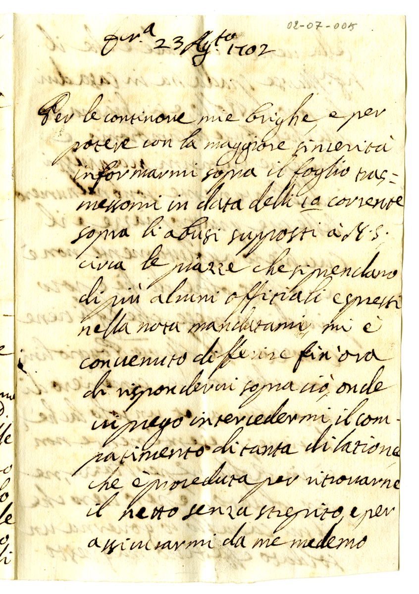 Lettera sopra alcuni supposti abusi circa le piazze da parte di alcuni ufficiali (1702 agosto 23)