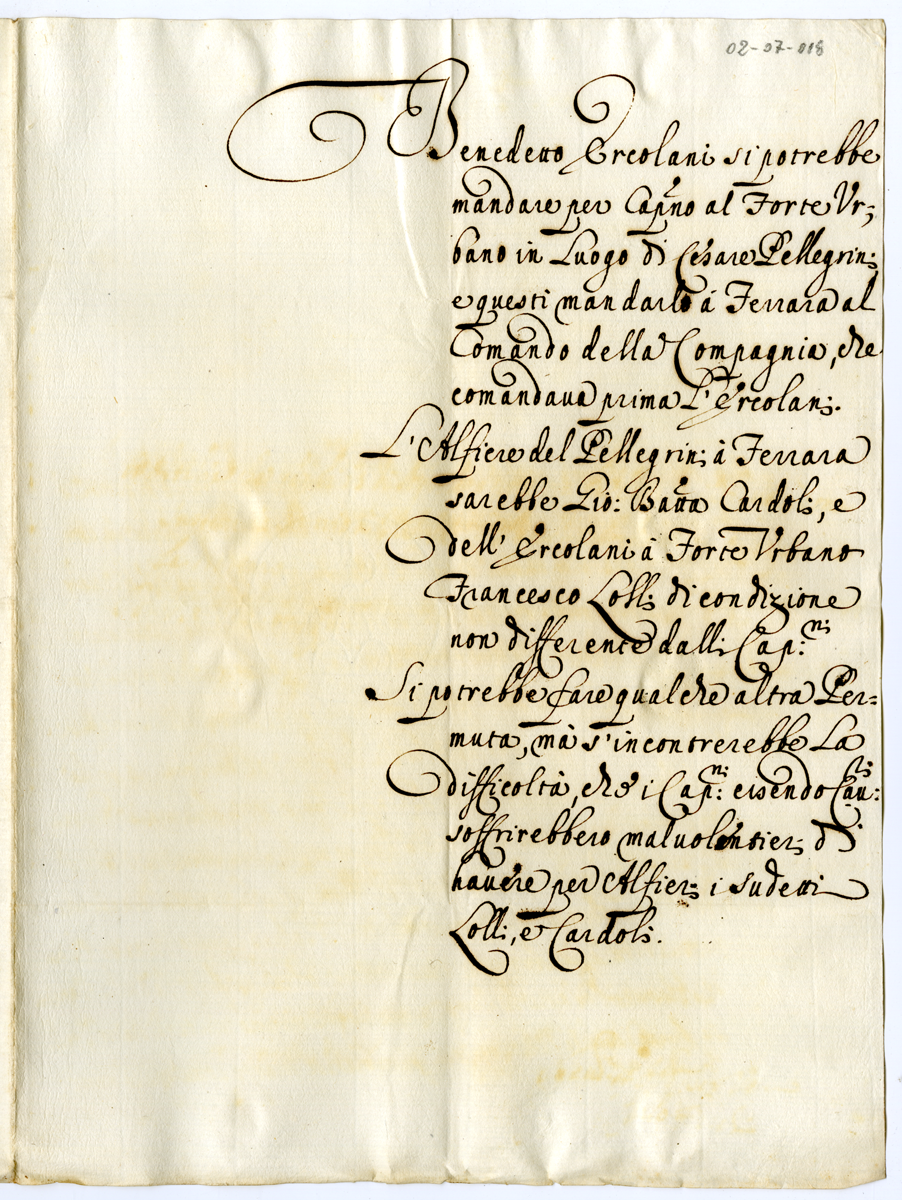 4. Sul trasferimento di Benedetto Ercolani al Forte Urbano (1702-1704)