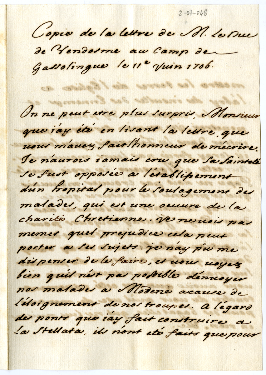 Copia di lettera del duca di Vendome (1706 giugno 11)