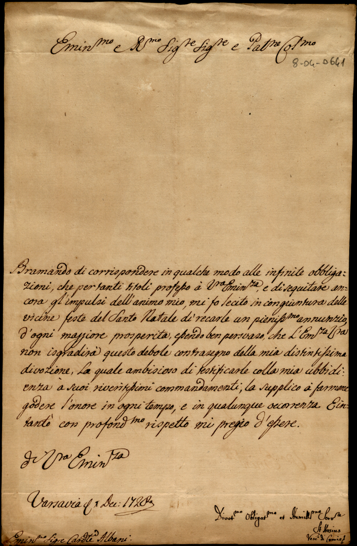 Lettere di diversi all'eccellentissimo signor cardinale S. Clemente dell'anno 1723, 1727 e 1728