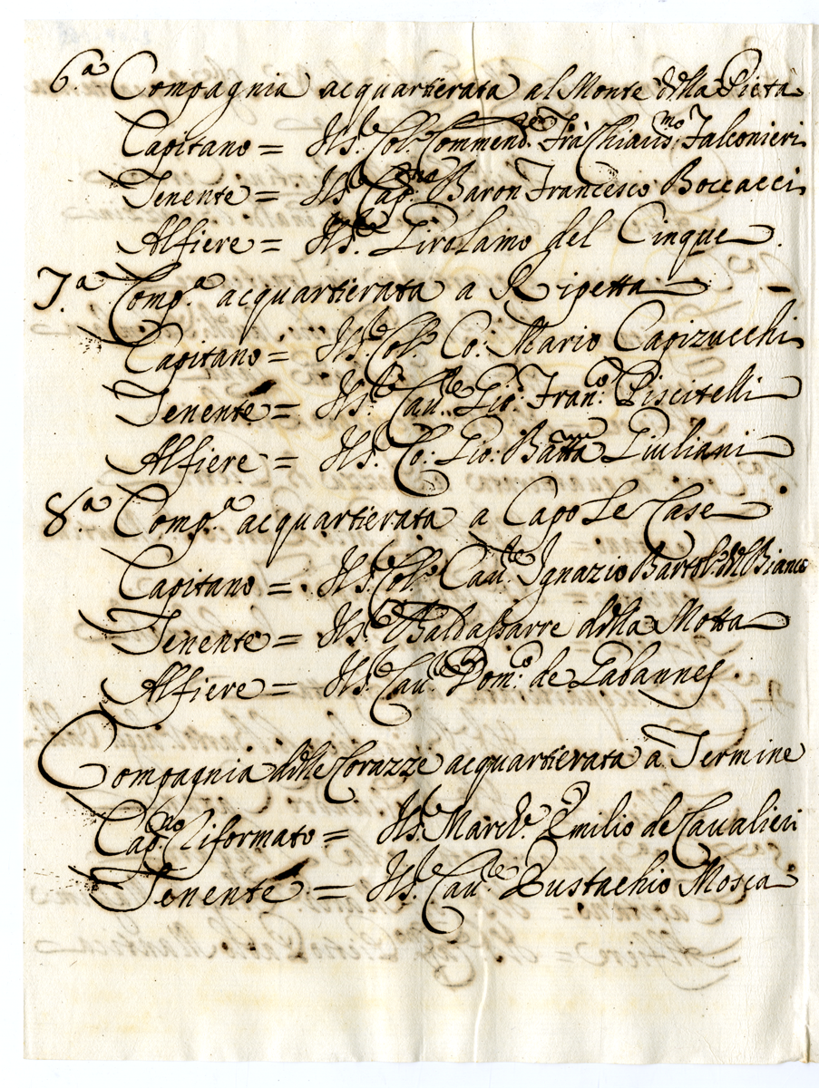 Nota delle compagnie acquartierate a Roma (1700-1721)