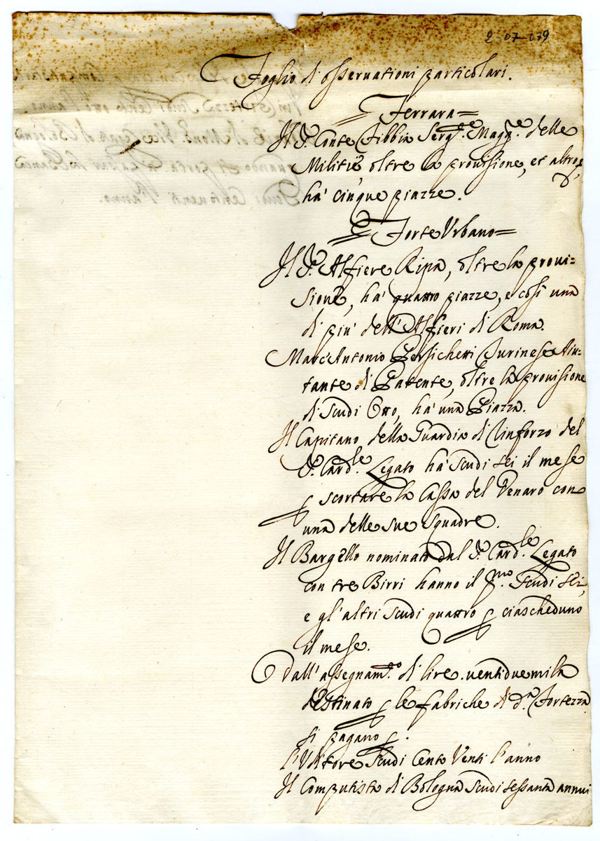 Osservationi particolari sopra Ferrara e forte Urbano (1700-1721)
