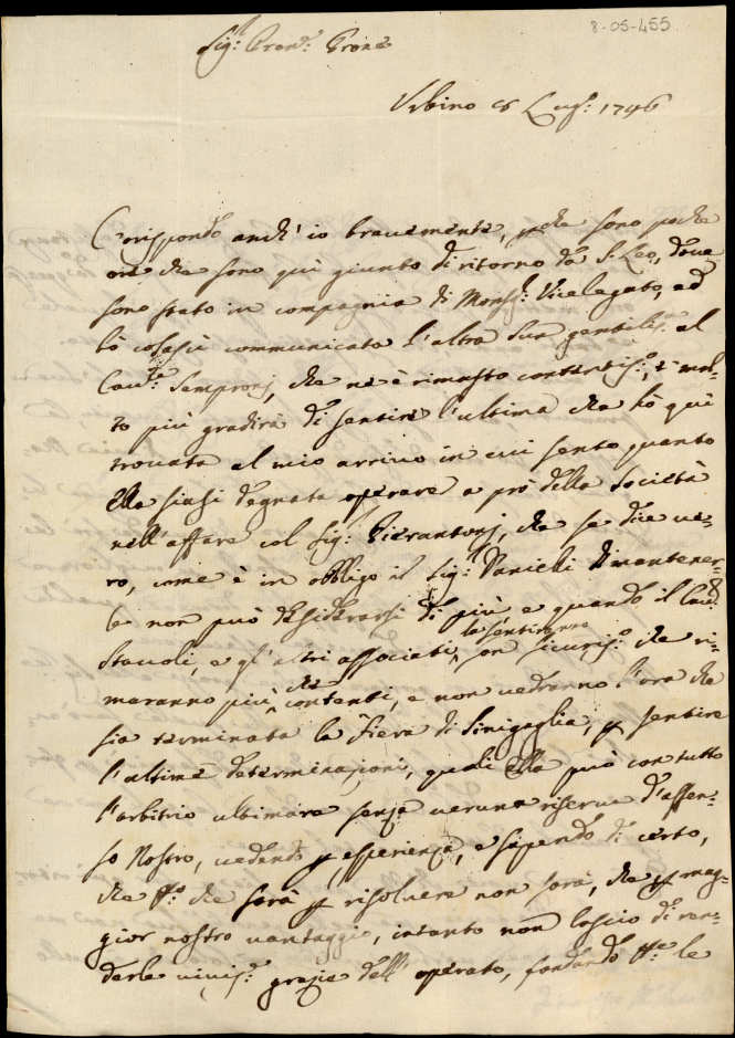 Lettere ricevute in Urbino dal Signor Principe Orazio Albani ultimo di questo nome nell'anno 1746