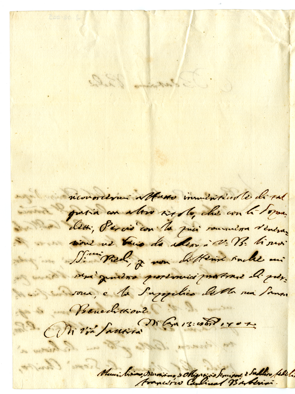 4. Lettera del cardinale Francesco Barberini a papa Clemente XI (1704 ottobre 13)