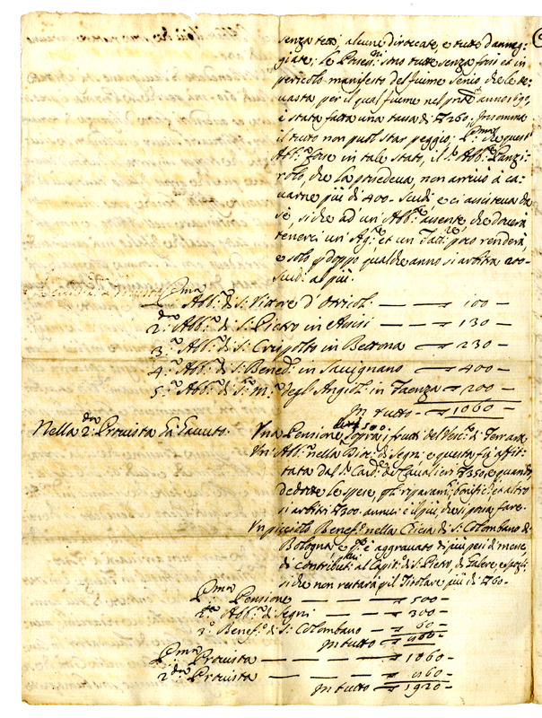 Nota de Titoli, et altro con il loro frutto che li ha havuti il Cardinale Carlo Bichi, nelle due proviste (1690-1718)