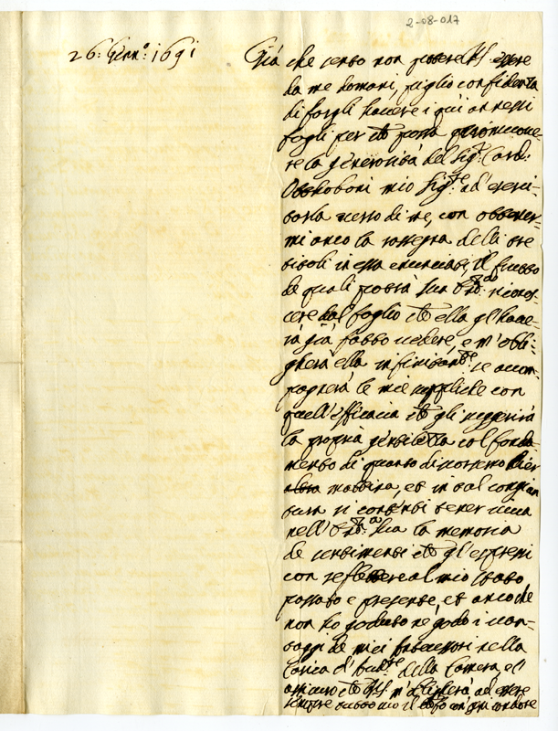 Lettera del maestro Vincenzo Bichi ad un prelato (1691 gennaio 26)