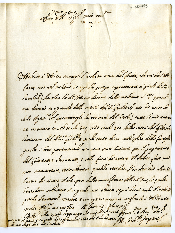 Lettera del cardinale Imperiali a un cardinale (1690 marzo 3)