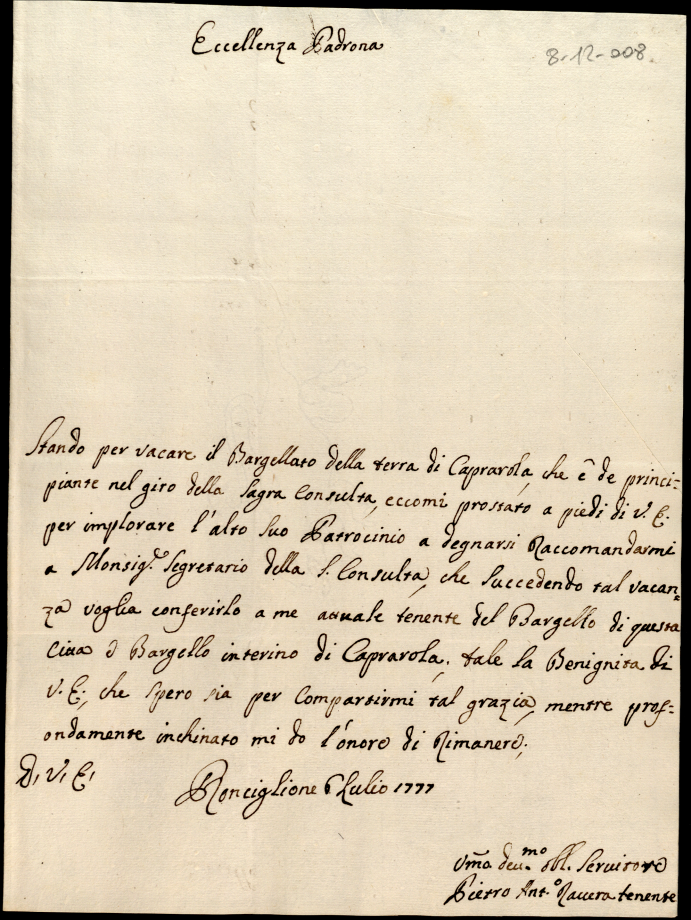 Lettere ricevute in Urbino nella permanenza in Urbino nei mesi di maggio, giugno e luglio 1777