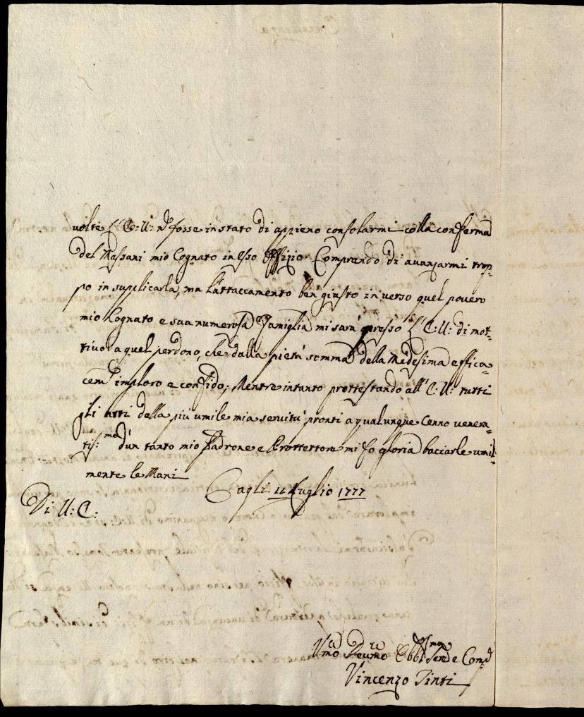 Lettere ricevute in Urbino nella permanenza in Urbino nei mesi di maggio, giugno e luglio 1777