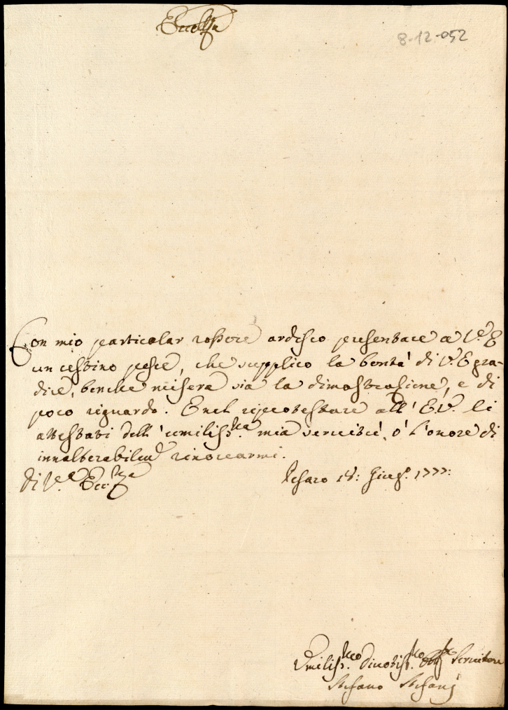Lettere ricevute in Urbino nella permanenza in Urbino nei mesi di maggio, giugno e luglio 1777