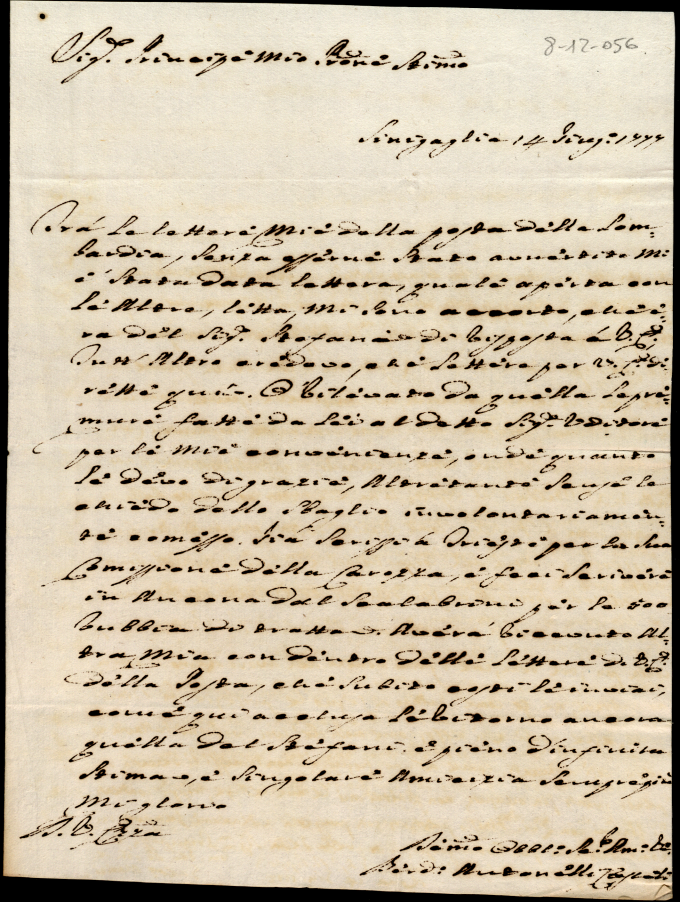 Lettere ricevute in Urbino nella permanenza in Urbino nei mesi di maggio, giugno e luglio 1777