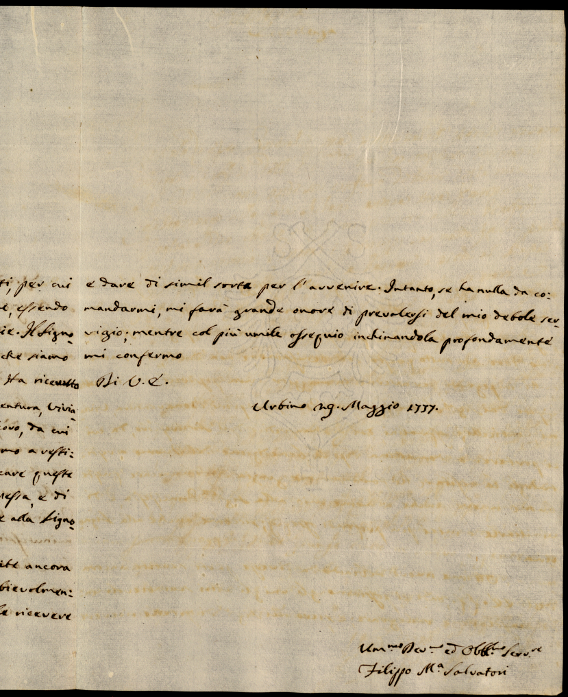 Lettere ricevute in Urbino nella permanenza in Urbino nei mesi di maggio, giugno e luglio 1777