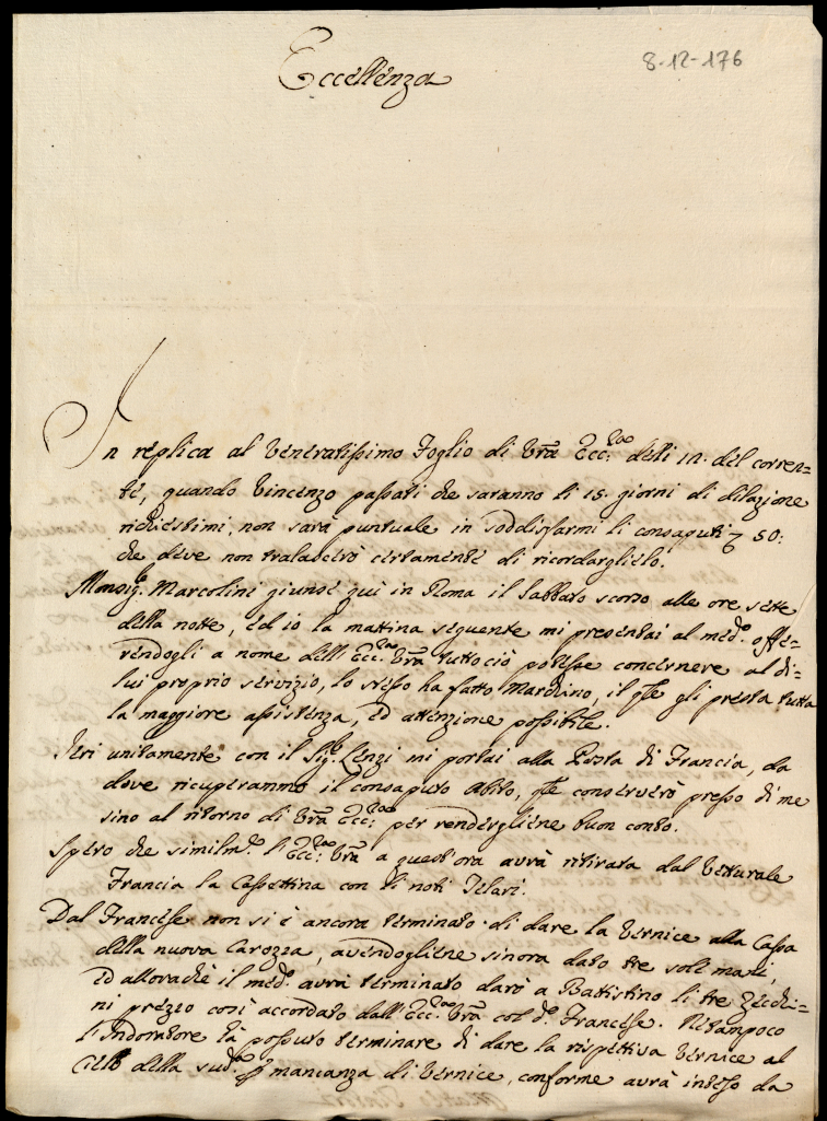 Lettere ricevute in Urbino nella permanenza in Urbino nei mesi di maggio, giugno e luglio 1777