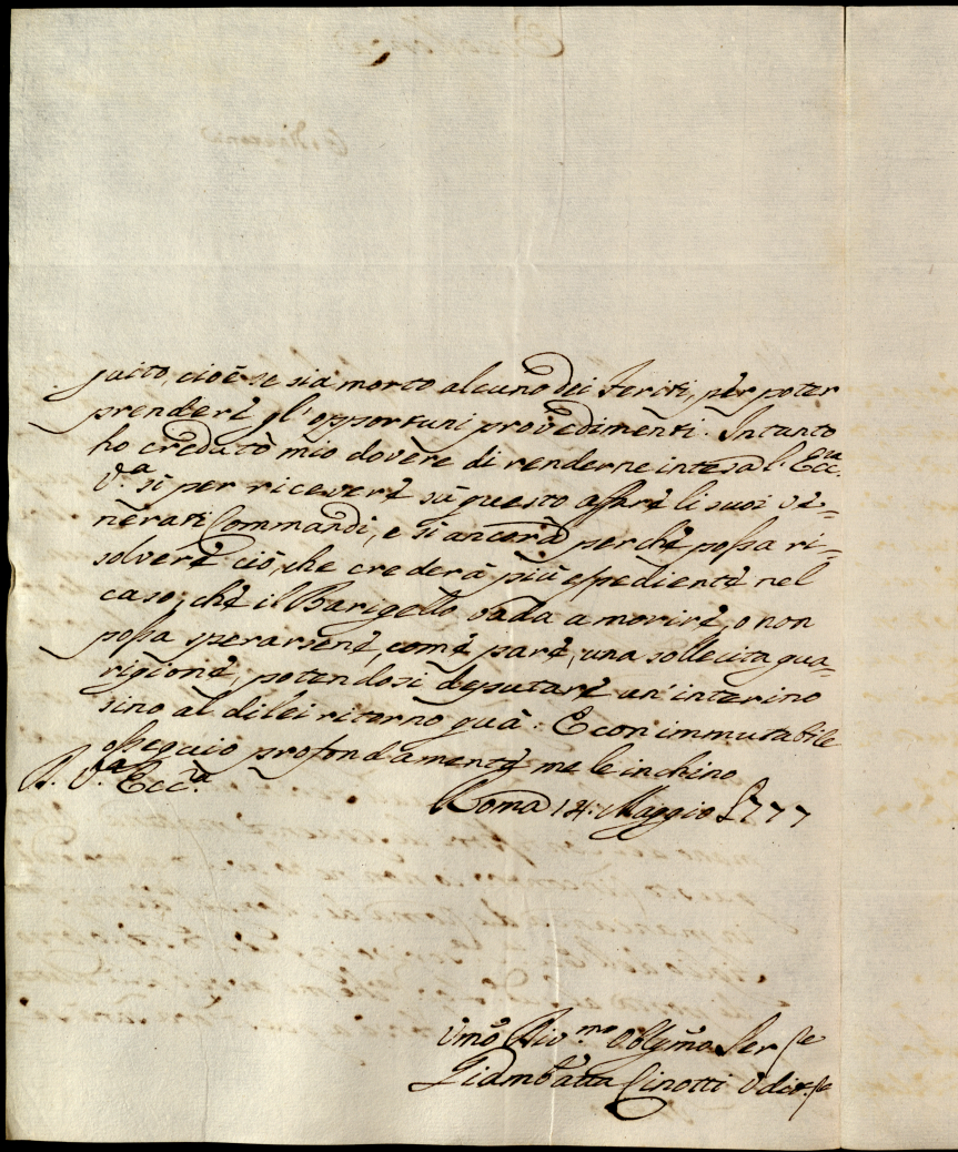 Lettere ricevute in Urbino nella permanenza in Urbino nei mesi di maggio, giugno e luglio 1777