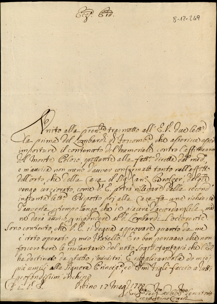 Lettere ricevute in Urbino nella permanenza in Urbino nei mesi di maggio, giugno e luglio 1777