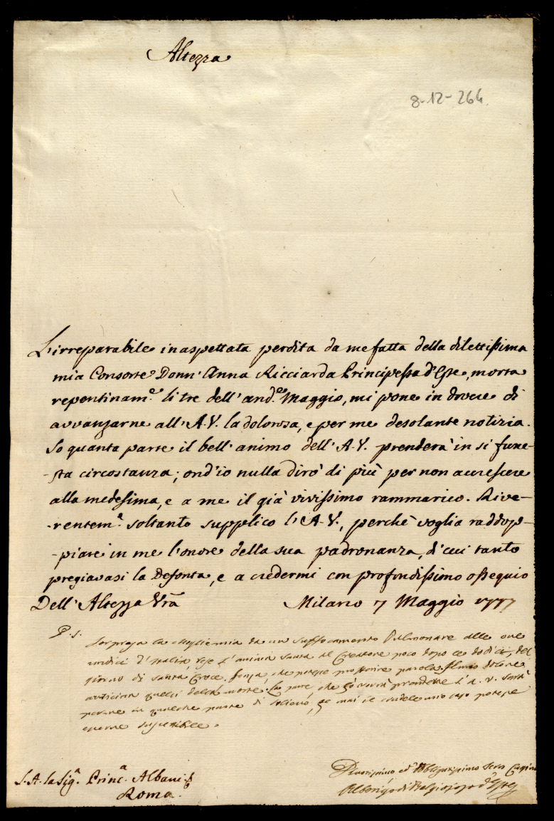 Lettere ricevute in Urbino nella permanenza in Urbino nei mesi di maggio, giugno e luglio 1777