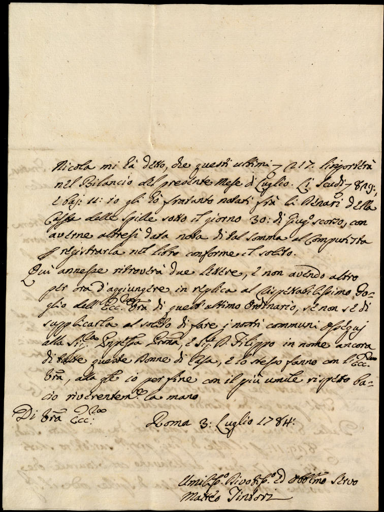 Lettere diverse ricevute in Colbordolo, Pesaro e Senigallia nel 1784