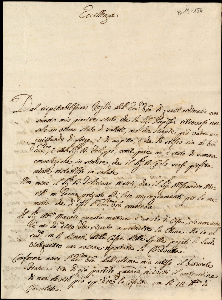 Lettere diverse ricevute in Colbordolo, Pesaro e Senigallia nel 1784