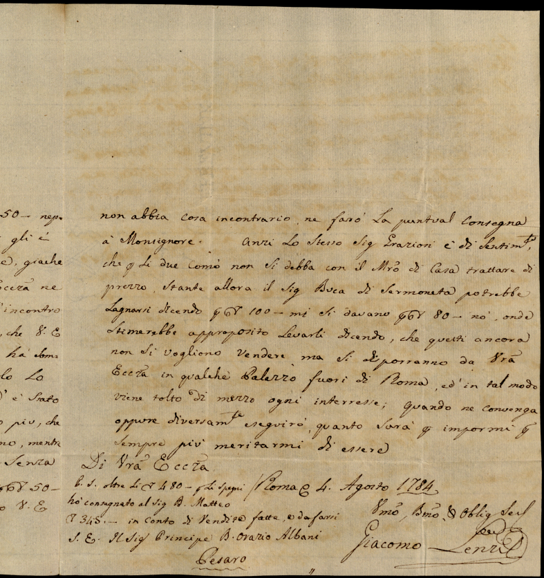 Lettere diverse ricevute in Colbordolo, Pesaro e Senigallia nel 1784