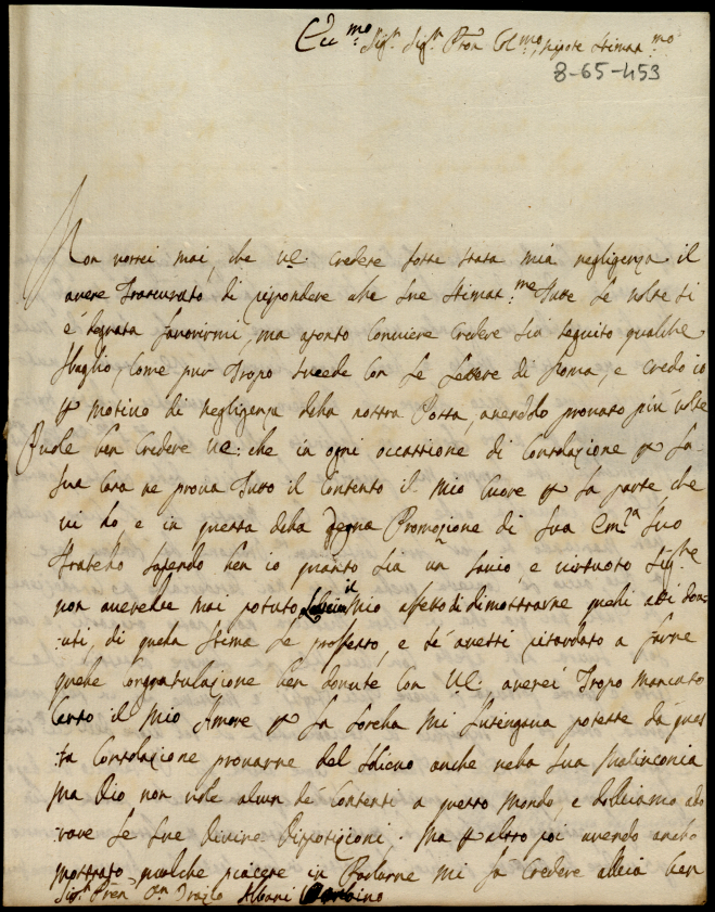 Lettere ricevute in Urbino dal Signor Principe Orazio Albani ultimo di questo nome nell'anno 1747