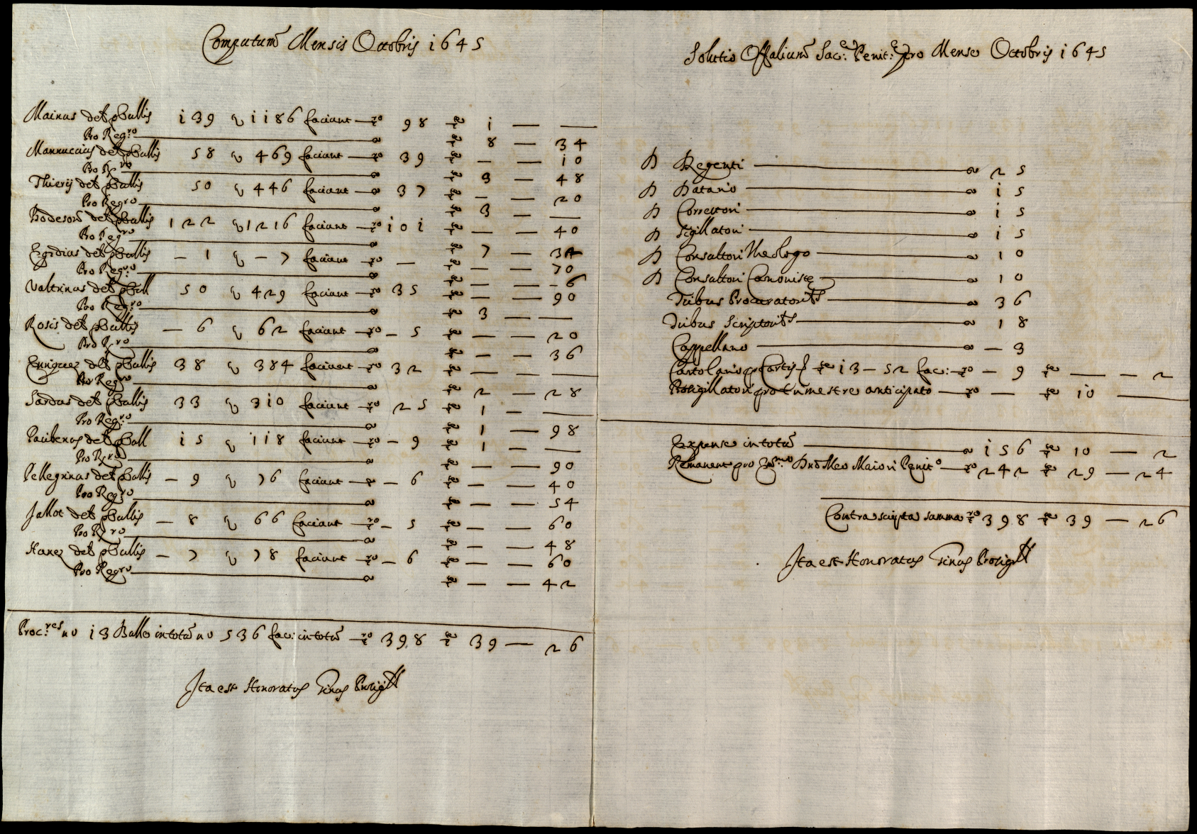 Note contabili relative agli interessi della Penitenziaria spettanti al cardinale S. Onofrio