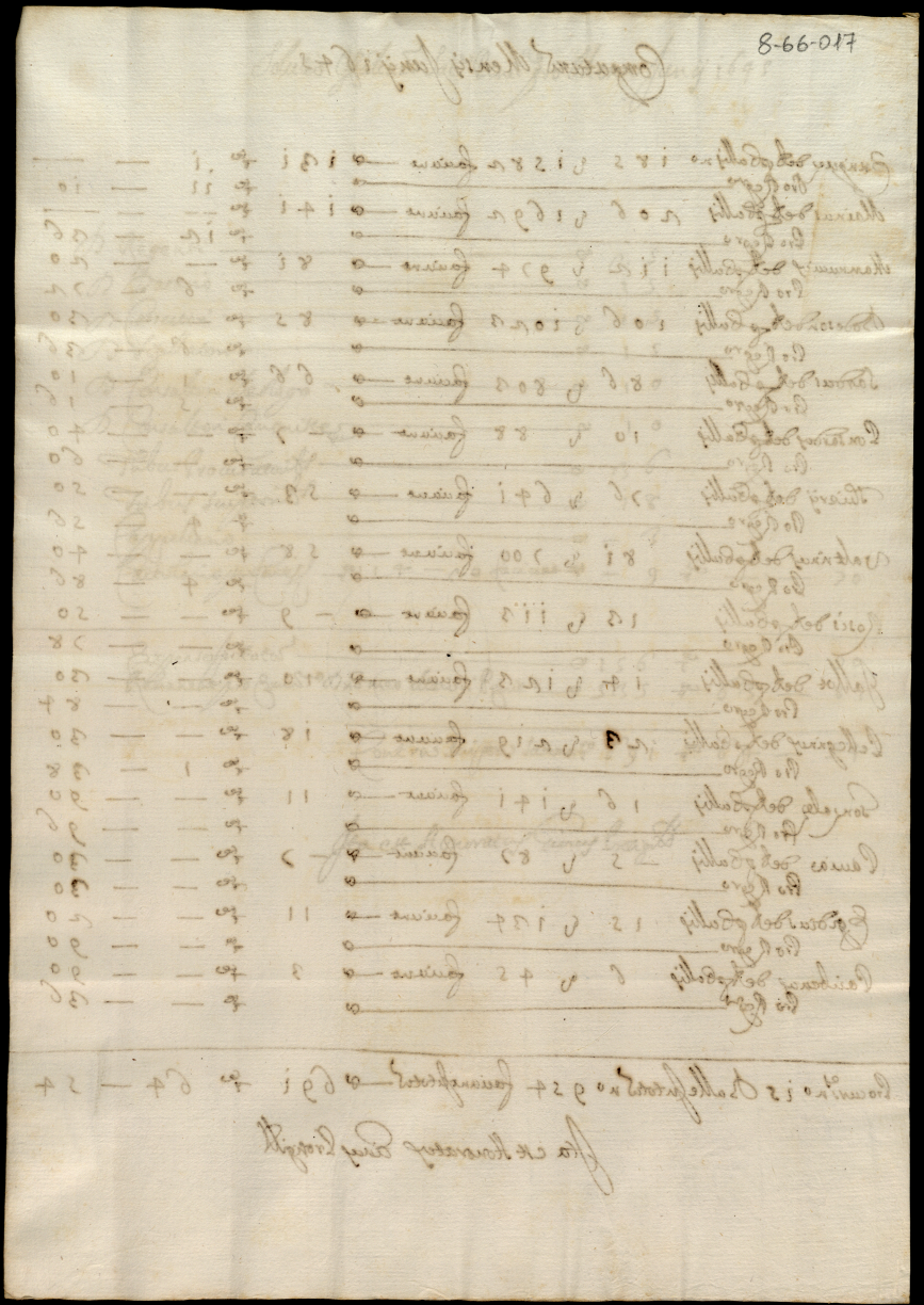 Note contabili relative agli interessi della Penitenziaria spettanti al cardinale S. Onofrio