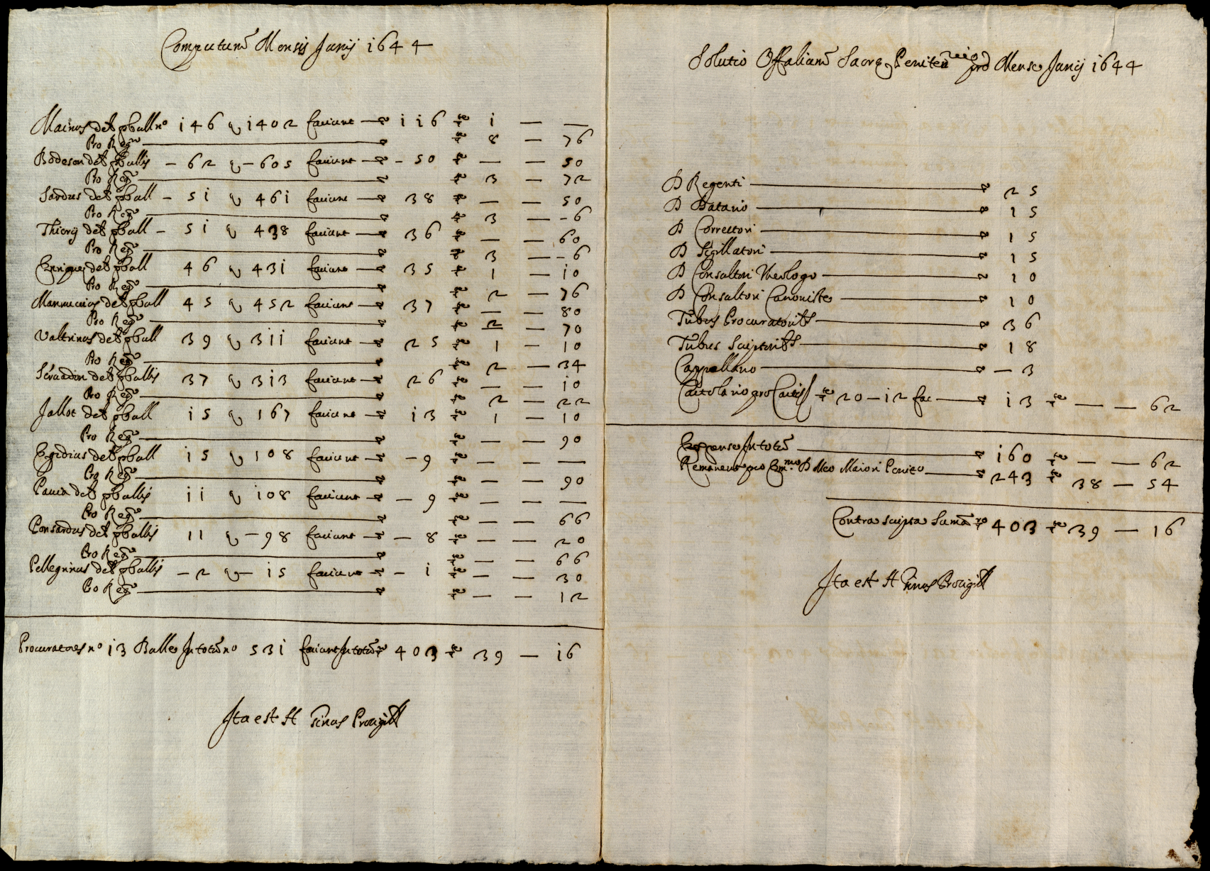 Note contabili relative agli interessi della Penitenziaria spettanti al cardinale S. Onofrio