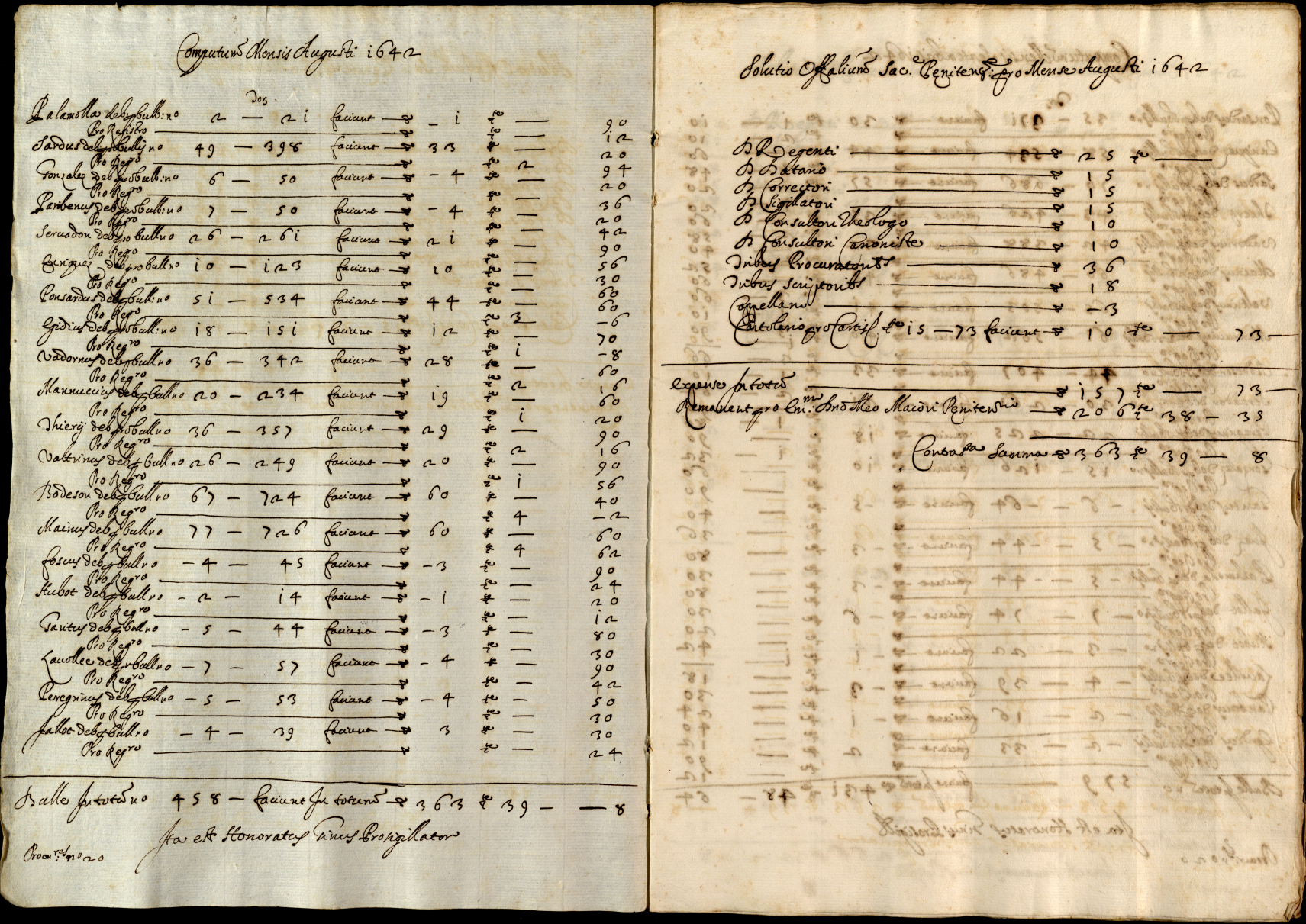 Note contabili relative agli interessi della Penitenziaria spettanti al cardinale S. Onofrio